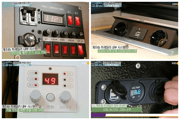 트레일러 외부에도 usb, ac단자 220v 소켓이 있어요.