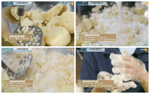 재료: 감자, 감자전분, 우유, 크림치즈 or 모차렐라 치즈, 소금, 버터